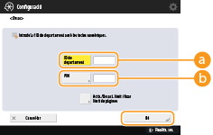 Introduïu un número de 7 dígits o menys per al PIN i premeu <Confirmar>. Torneu a introduir el PIN i premeu <Bé> per confirmar-lo. Si no voleu establir un PIN, deixeu aquest element en blanc.