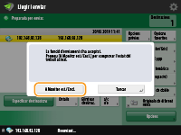 Si <Mostrar avís en acceptar el treball> està establert en <On>, la pantalla <Monitor estat/Cancel·lar> pot aparèixer a partir de la pantalla següent mostrada després de rebre un treball d'enviament. <Mostrar avís en acceptar el treball>