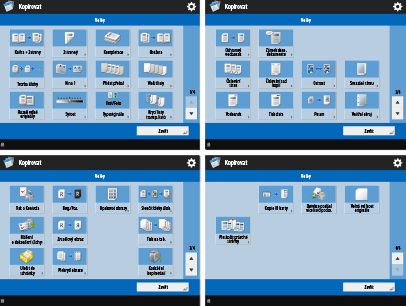 Obrazovka základních funkcí kopírování