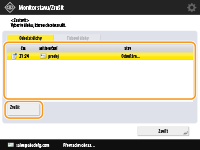 Pokud na ovládacím panelu stisknete tlačítko  (Stop) během zpracování úlohy odesílání/tiskové úlohy a zobrazí se obrazovka, která vede na <Odeslat úlohy>/<Tiskové úlohy>, probíhající úloha odesílání/tisková úloha se pozastaví a zobrazí se okno <Odeslat úlohy>/<Tiskové úlohy>.
