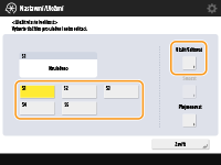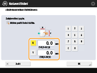 Do paměti stroje můžete uložit až pět často používaných volných velikostí papíru. Zde uložené velikosti papíru se zobrazí na obrazovce výběru velikosti papíru pro zásuvku na papír a víceúčelovou přihrádku (Zadání velikosti a typu papíru v podstavci/zásuvce na papír nebo Zadání velikosti a typu papíru ve víceúčelové přihrádce).