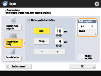 Chcete-li nastavit šířku pro každý okraj zvlášť, stiskněte <Smazání rámu originálu> nebo <Smazání rámu knihy> a poté stisknutím <Nastavit nezávisle> zadejte šířky smazání.