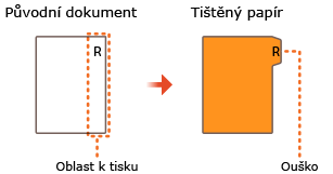 Budete-li na tabelační papír tisknout, uložte originál dle znázornění na následující ilustraci. Na oblast ouška tabelačního papíru neaplikujte nepotřebné znaky nebo obrázky.