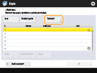 Kromě vložení tabelačního papíru můžete při kopírování provést tisk na samotný tabelační papír. Uložte tabelační papír do zdroje papíru, uložte originál kopírovaný na tabelační papír a stiskněte volbu <Tisk na tab.> vybranou v kroku 4.