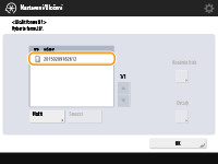 <Přejmenovat formulář>. Chcete-li obraz formuláře odstranit, vyberte obraz formuláře ze seznamu a stiskněte <Smazat>.Do systému stroje lze uložit až 100 obrazových formulářů. Přesný počet však závisí na kapacitě pevného disku.