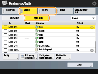 Uložení adresy z historie odesíláníAdresu můžete do adresáře nebo na tlačítko volby na jeden dotek uložit pomocí historie odesílání na obrazovce <Monitor stavu/Zrušit>. Tím ušetříte čas potřebný k přímému zadávání faxového čísla, také tím předcházíte odeslání faxu na nesprávné číslo, v případě špatného přímého zadání.