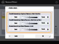 Když provedete nastavení na <Tmavá> stranu, zvětší se plocha potištěná s maximální sytostí. Když provedete nastavení na <Slabá> stranu, tak se plné plochy, jako je text a řádky pomohou vytisknout pouze polotónově s chybějícími tečkami. Toto nastavení by se mělo hlavně používat k nastavení střední sytosti.
