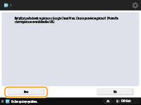 Stroj můžete registrovat z mobilního zařízení nebo aplikace Google Chrome. Před dokončením registrace stroj zobrazí následující potvrzovací obrazovku. Stisknutím <Ano> registraci dokončete.