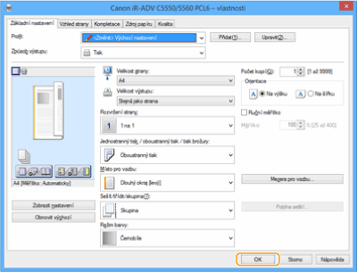 Podle potřeby zadejte nastavení tisku a klikněte na [OK].