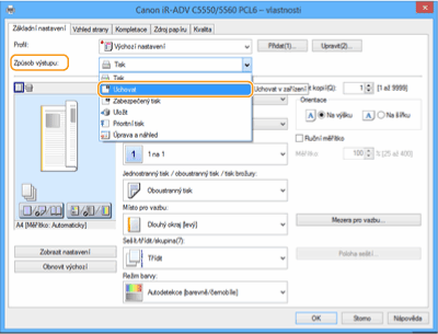 Vyberte [Uchovat] v části [Způsob výstupu].