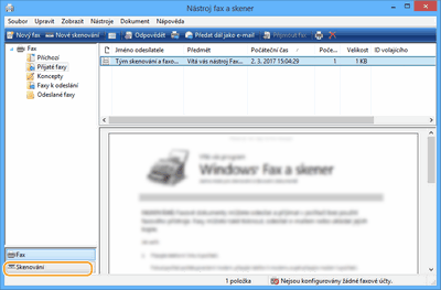 Klikněte na [Start] [All Programs]  [Nástroj Fax a skener].