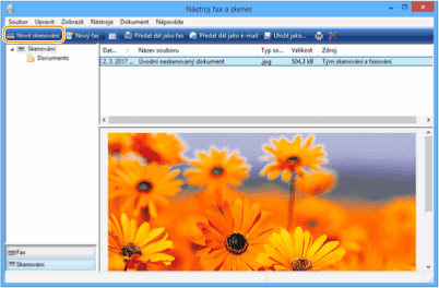 Po dokončení skenování se naskenovaný dokument zobrazí v seznamu souborů na obrazovce [Nástroj Fax a skener] a uloží se do složky [Naskenované dokumenty] složky [Dokumenty].