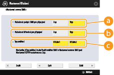Nastavíte-li typ ověřování, <Použít ověření SMB> v <Nastavení serveru SMB> se nastaví na <Zap>. <Nastavení TCP/IP>