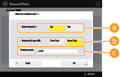 Exkluzivní komunita je komunita (skupina) připravená pro správce používající software Canon, jako např. iW Management Console. Pro použití exkluzivní komunity stiskněte <Nastavit vyčleněnou komunitu>. Pro zadání obecné komunity stiskněte <Nastavit název komunity 1> nebo <Nastavit název komunity 2>.