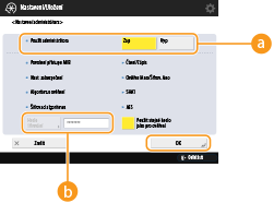 Je-li účet „Administrator“ deaktivovaný, nelze nastavit <Nastavení administrátora> (položka <Použít administrátora> je pevně nastavena na hodnotu <Vyp>).