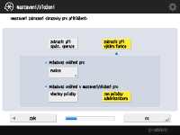Vyberte načasování pro zobrazení přihlašovací obrazovky. Pokud vyberete <Zobrazit při výběru funkce>, stiskněte <Funkce>, vyberte funkci, pro kterou se má obrazovka přihlášení zobrazit, a stiskněte <OK>. Na obrazovce <Nastavení/Uložení> také vyberte položky nastavení, pro které se má zobrazit obrazovka pro přihlášení.