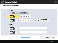 Stiskněte <Primární server DNS> a <Sekundární server DNS>, zadejte adresu IPv4/IPv6 pro server DNS a stiskněte <Další>.