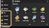 Du kan ændre de indstillingsknapper, der vises på skærmbillederne Grundlæggende funktioner (til kopiering, faxning og scanning). Du kan også vise et andet skærmbillede for grundlæggende funktioner, der er tilpasset hver enkelt bruger, der er logget på.