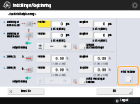 Når du igen åbner skærmbilledet <Justér billedplacering> igen, når du har lukket det skærmbillede ved at trykke på <OK>, returneres værdierne til <0>. Men den justerede værdi er alligevel aktiv. Gentager du punkterne, skal du aflæse den nye værdi fra registreringsmærkerne på det nye testprint og indtaste den nye værdi.