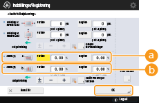 Indstil op/nedkopieringsforholdet (%) for <Zoom (a)> og <Zoom (b)> på skærmen <Justér billedplacering>  tryk på <OK>.