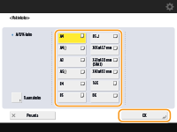 Jos näytössä on muu kuin paperikoon ja tyypin määritysikkunaJos näytössä on viesti, joka kehottaa säätämään paperiohjaimen, säädä paperiohjaimen leveys uudelleen ja valitse <OK>.