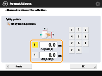 Määritä <X>- ja <Y>-sivun pituus. Valitse kummankin sivun pituus numeropainikkeilla valitsemalla <X> tai <Y>.