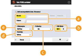 Vaikka nimikkeitä voidaan määrittää faksin asetuksissa ( Faksin perustoimintonäyttö), ne kannattaa asettaa tässä, jos haluat muuttaa lähetysehtoja eri vastaanottajille.