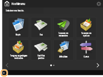 op het Hoofdmenu en het scherm met basisfuncties om het scherm aan te passen, zoals het herschikken van knoppen of maken van sneltoetsen. Alleen een beheerder kan het hoofdmenuscherm aanpassen. Het aanraakscherm aanpassen