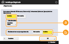 Druk op <Instellen> of <Geforc. doc. scanvergr.> voor de functies waarvoor u de TL-code wilt gebruiken. Wanneer <Instellen> of <Geforc. doc. scanvergr.> is geselecteerd bij <Toegang opgeslagen bestanden>, wordt de TL-code ingesloten in opgeslagen bestanden wanneer ze worden afgedrukt.