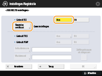 Om een algemene naam in het servercertificaat te verifiëren, selecteert u <Aan> bij <Verificatieservernaam controleren> en voert u de naam van de verificatieserver in die door de aangemelde gebruiker is geregistreerd bij <Verificatie servernaam>.