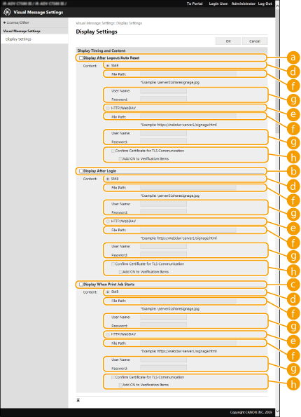 Deze instelling is niet opgenomen in Device Information Distribution. De apparaatgegevens met andere multifunctionele Canon-printers delen