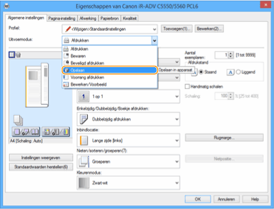 Selecteer [Opslaan] uit [Uitvoermodus] en klik op [Yes].