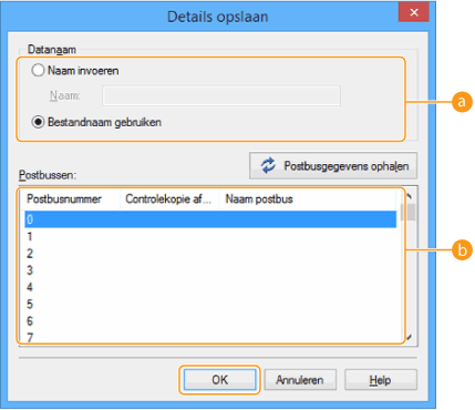 Selecteer het postvak waarin u wilt opslaan. Als u hierop klikt en tegelijkertijd de [CTRL]-toets op het toetsenbord van de computer ingedrukt houdt, kunt u meerdere postvakken selecteren en dezelfde bestanden in elk postvak opslaan.