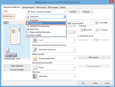 Wybierz [Druk zaplanowany] dla [Metoda druku].
