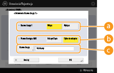Społeczność ograniczona, to społeczność (grupa) przygotowana dla menadżerów wykorzystujących oprogramowanie Canon, takie jak iW Management Console. Aby korzystać ze społeczności ograniczonej, naciśnij na <Ustaw Społeczność dedykowaną>. Aby określić społeczność ogólną, naciśnij na <Ust. nazwy społecz. 1> lub <Ust. nazwy społecz. 2>.