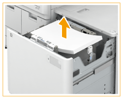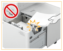 Se a máquina ficar sem papel e a impressão for interrompida quando estiver a imprimir no modo agrafar, não retire as folhas impressas que ainda não foram agrafadas. (A máquina retoma a impressão e o agrafamento depois de retirar o papel encravado.)