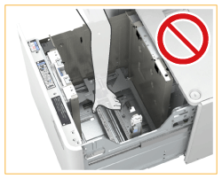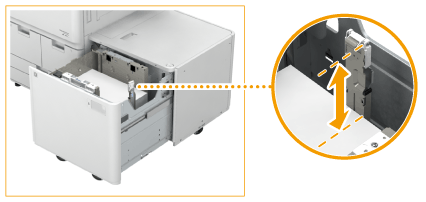 Ajuste a placa de alteração de formato exterior, a placa de alteração de formato interior e o suporte traseiro corretamente para evitar que o papel encrave e para não sujar as impressões ou o interior da máquina.