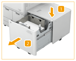 O elevador interior desce automaticamente para a posição de colocação de papel.