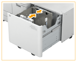 Só pode colocar papel de formato A4 no Paper Deck Unit-E. Para saber como alterar o formato de papel que pode ser colocado no Paper Deck Unit-E, contacte o revendedor local autorizado da Canon.