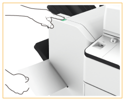 AgrafosSe estiver a utilizar o modo Agrafar, não retire a pilha de papel do tabuleiro de saída durante o trabalho. Retire a pilha de papel quando terminar o trabalho.