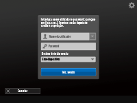 Quando o ecrã de início de sessão é apresentado, os utilizadores autorizados registados têm obrigatoriamente de iniciar sessão para continuar a utilizar a máquina. Para iniciar sessão, cada utilizador tem de introduzir o nome de utilizador e password respetivos. Isso garante a segurança da máquina. Além disso, os utilizadores podem utilizar a máquina da forma mais conveniente possível, personalizando o visor e as programações consoante as preferências pessoais. Os itens apresentados no ecrã de início de sessão variam consoante as programações de gestão do utilizador. Efetue a operação de início de sessão com base nos itens apresentados.