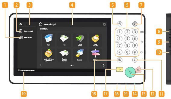 Carregue nesta tecla para iniciar sessão quando for necessária autenticação pessoal. Depois de utilizar a máquina, carregue novamente nesta tecla para terminar sessão.