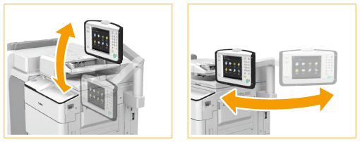 Pode ajustar o ângulo do painel de controlo, conforme indicado abaixo. Se exceder o intervalo de ajuste numa direção, pode quebrar o braço que suporta o painel de controlo.