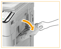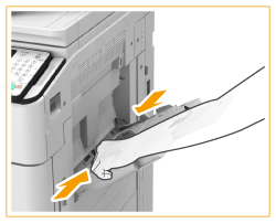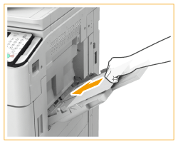 Pode imprimir no verso de papel impresso. Alise as áreas enroladas do papel impresso e introduza-o no tabuleiro multifunções, com o lado a imprimir voltado para cima (anteriormente impresso voltado para baixo). Em seguida, carregue em <Verso de uma pág. FRT-VRS> no ecrã para selecionar o tipo de papel.
