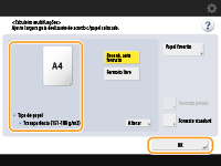 Quando alterar o formato e o tipo do papelSe colocar um tipo diferente de papel na máquina, tem de alterar as programações. Se não alterar as programações, a máquina não imprimirá corretamente. Especificar o formato e o tipo de papel no deck/gaveta para papel