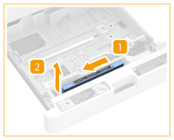 Deslize o acessório de alimentação de separadores para a parte posterior da gaveta para papel.