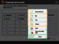 Selecione as funções a utilizar para o destino a partir de <Fax>, <Correio eletrónico>, <I-fax> ou <Ficheiro>. Gravar destinos no livro de endereços