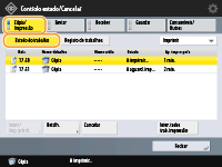 Carregue em <Cópia/Impressão>  <Estado do trabalho>.