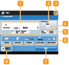 Altere o ecrã das funções básicas de cópia para o "Ecrã de cópia rápida", para aceder rapidamente a cada item de programação. Alterar rapidamente as programações (Ecrã de cópia rápida)