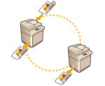É possível reduzir o tempo de cópia, utilizando esta função ao fazer uma grande quantidade de cópias. Após efetuar a leitura de todos os originais com a máquina, esta e outra impressora multifunções Canon* podem dividir o número de cópias e copiar em simultâneo. Esta função é conveniente se pretender copiar uma grande quantidade de materiais com urgência.